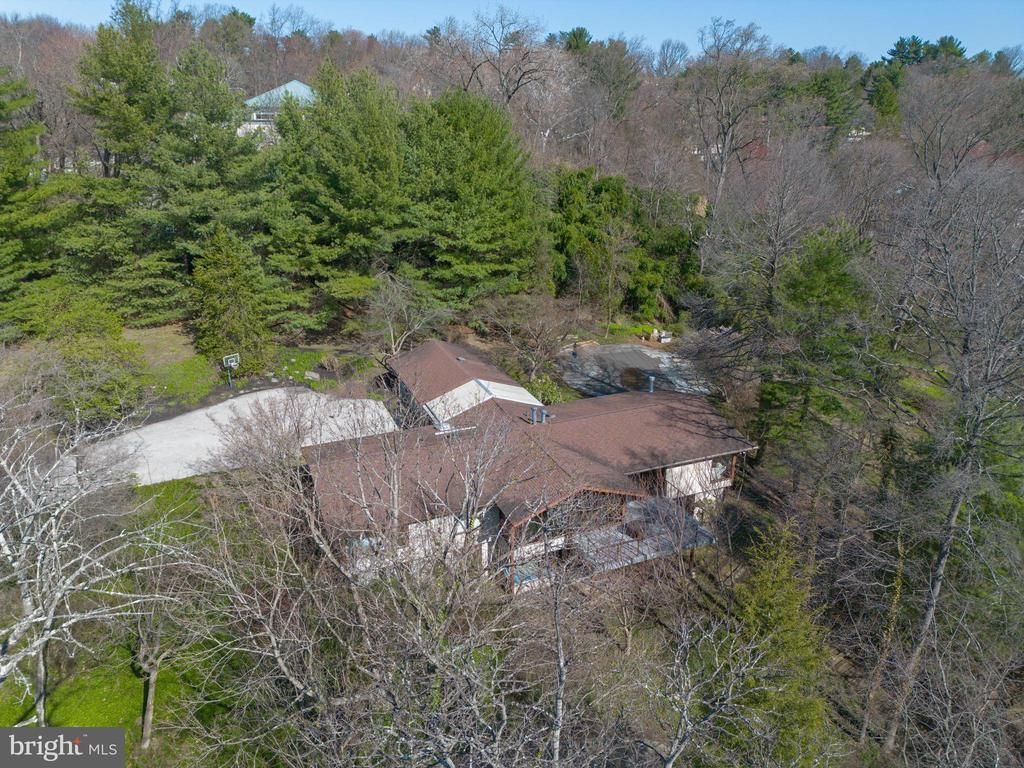 Modern elegance and expansive living spaces define this exceptional six-bedroom estate by renowned builder Robert McElroy, privately set on 3.83 acres and featuring a SEPARATE GUEST HOUSE. Beyond the gated entrance, a long, winding drive leads to a sophisticated yet understated residence highlighted by soaring ceilings, walls of glass, and rich wood accents throughout. A dramatic glass atrium-style reception hall with slate flooring creates a striking first impression. The stunning living room boasts a vaulted ceiling and an impressive window wall, filling the space with natural light and offering serene views of the surrounding landscape. The adjacent dining room, also with a vaulted ceiling and glass walls, provides seamless access to a wraparound deck—perfect for indoor-outdoor entertaining. The gourmet, center-island kitchen is a true showpiece, featuring exotic wood and stainless steel cabinetry, Blue Macaubas granite countertops, honed limestone floors, with premium appliances. Glass doors lead directly to the deck and pool area. A bright breakfast room with floor-to-ceiling windows connects the kitchen and family room, complete with custom built-ins. The main level is further enhanced by a luxurious primary suite offering a private sitting room, walk-in closet, and a sleek, spa-like bath. The lower level includes five additional bedrooms, 2 bathrooms, a laundry room, and a spacious recreation room with multiple windows and sliding glass doors, providing direct outdoor access. In harmony with the main residence, the guest house (built in 1990) offers approximately 1,000 square feet on the upper level, which could be used as a spacious home office with a sink, dishwasher, refrigerator, powder room, and access to a private deck through sliding glass doors. The lower level features an exercise room, full bath with shower, and a one-car garage. Additional highlights include a two-car attached garage, a whole-property generator servicing the home, guest house, and front gate, and beautifully landscaped grounds with mature trees. The resort-style swimming pool creates a private outdoor oasis, ideal for both relaxation and entertaining. A rare offering combining architectural distinction, privacy, and luxury amenities.